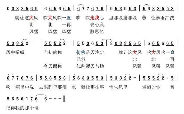 ▲《大风吹》曲谱-王赫野独唱版