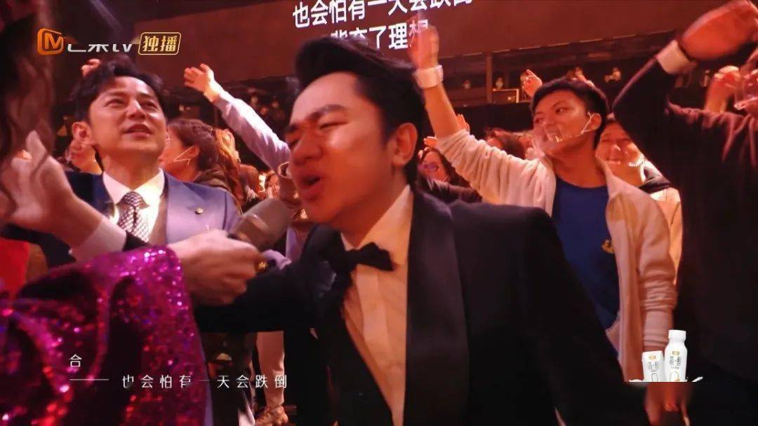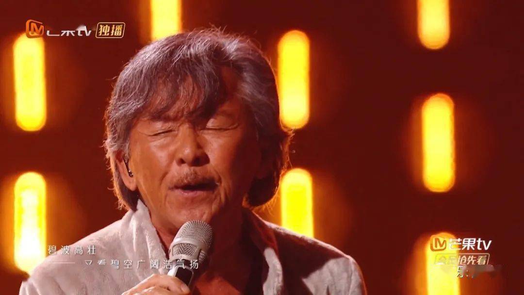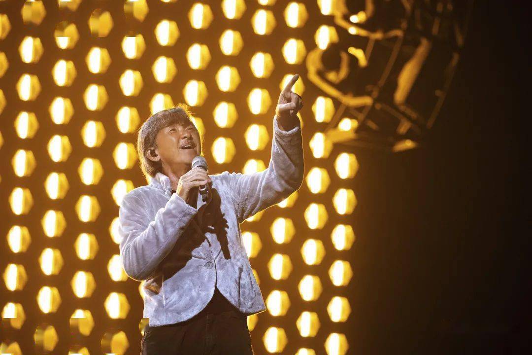 全程中气十足,劲过一班流量后生,唱到最后,他把“热似红日光”五个字分开,唱一个字,就指向台下的一波观众,直到唱出最后一个字,气势如长虹贯日,余势连绵不绝。