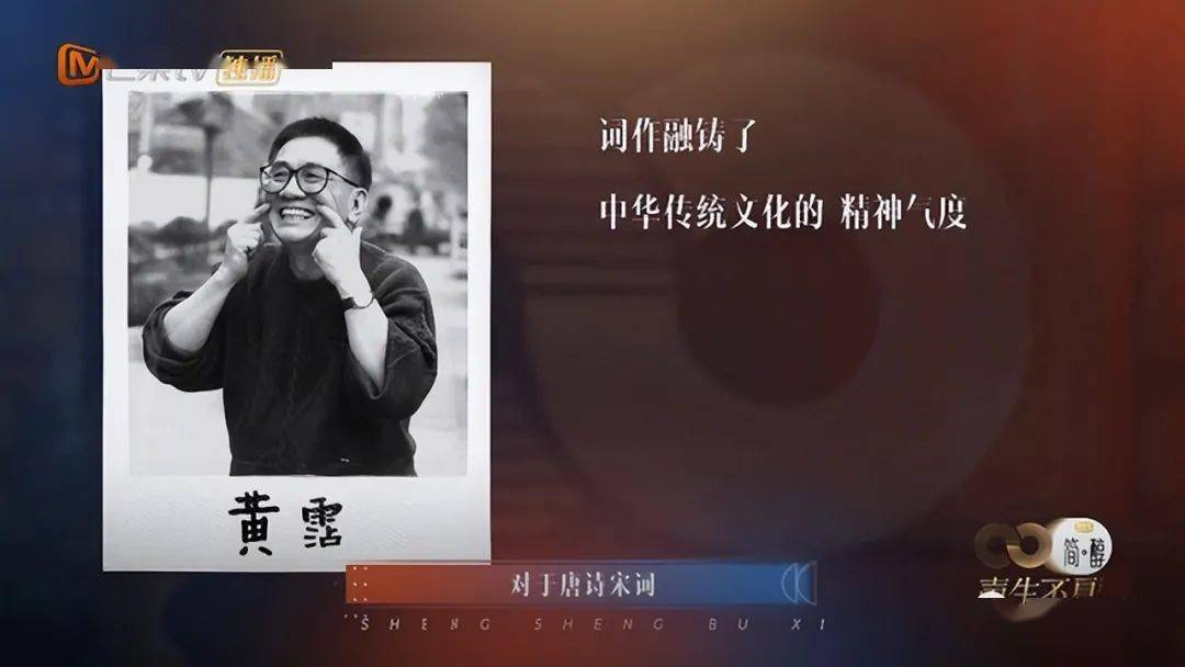 节目文案对黄 霑歌词的评价是,写出了“中国传统文化的精神气度。”
