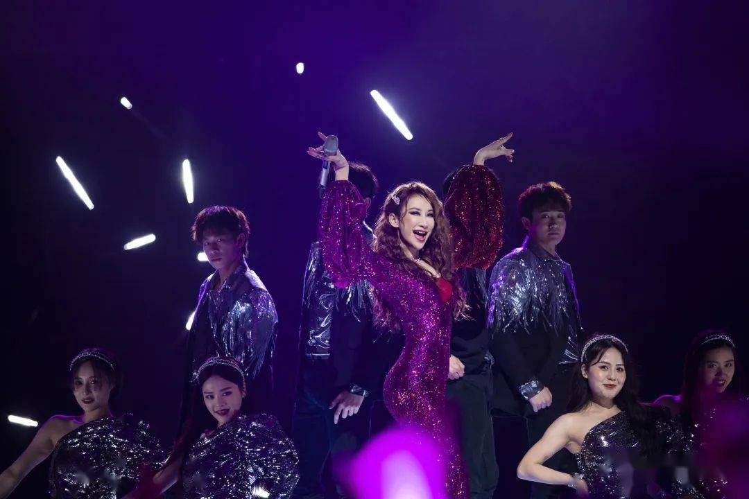 比如周笔畅站在耀眼的红色灯光前,头发编着小辫唱起的《夕阳醉了》,张学友果然是粤语歌无法绕开的名字,这是本场又一首他的作品了。