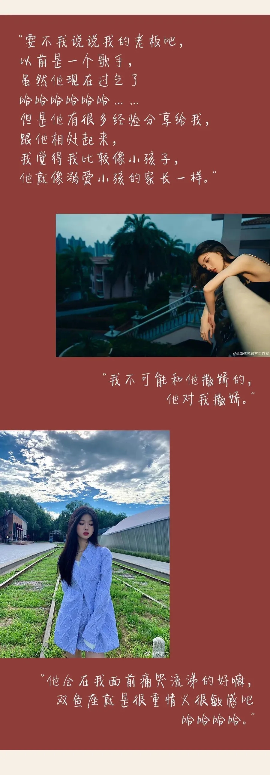 遇到良师李健,被建议好好上学读书,后又签约公司,稳扎稳打做歌手,提到被前辈帮助的故事时,单依纯说: