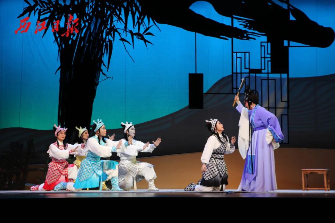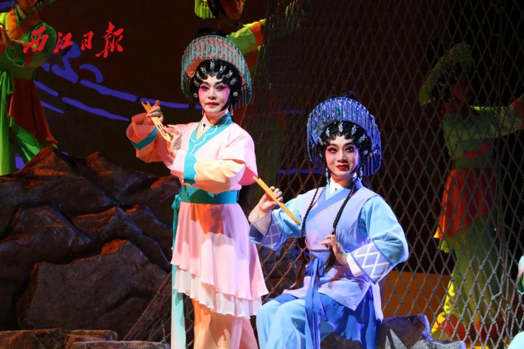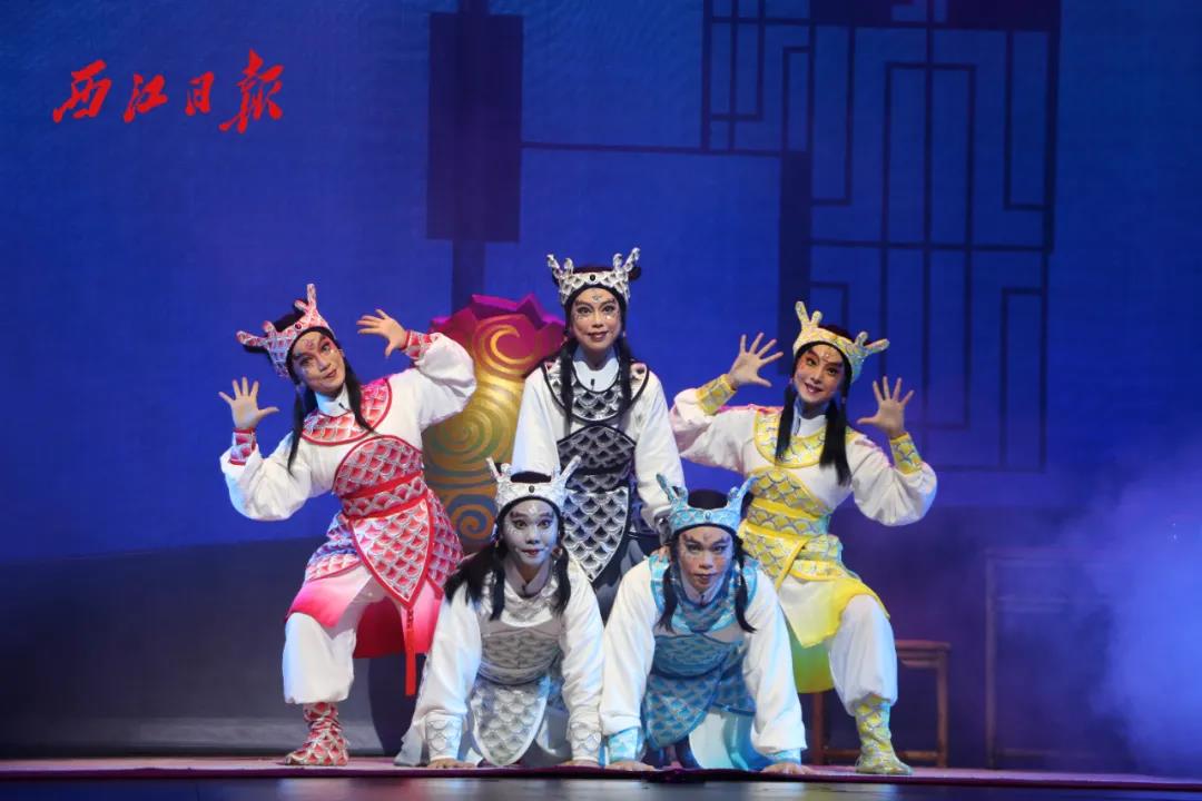 该剧创作除植根深厚的民间故事外,还在表演形式上借鉴、糅合我市各种“非遗”艺术元素,如德庆的《蝴蝶舞》《雄鸡舞》,封开的《五马巡城舞》以及怀集的《鱼龙舞》等。