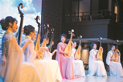 中国曲艺牡丹奖得主梁玉嵘、陈玲玉也带来了她们的拿手好戏。梁玉嵘演绎的《彩云追月》,旋律采用五声音阶写成,简单、质朴,线条流畅,优美抒情。动人的旋律加入人声的轻柔吟唱,缥缈的音色营造出幽淡的夜幕背景和浩瀚夜空的迷人景色,引人入胜。陈玲玉和广东音乐曲艺团优秀曲艺演员同台弹唱一曲《海缘》,作品以瑞典商船“哥德堡号”来访广州、广州欢迎各方宾客为内容,展现广州作为海上丝绸之路的起点之一,广接四方商旅的繁华景象,让人耳目一新。