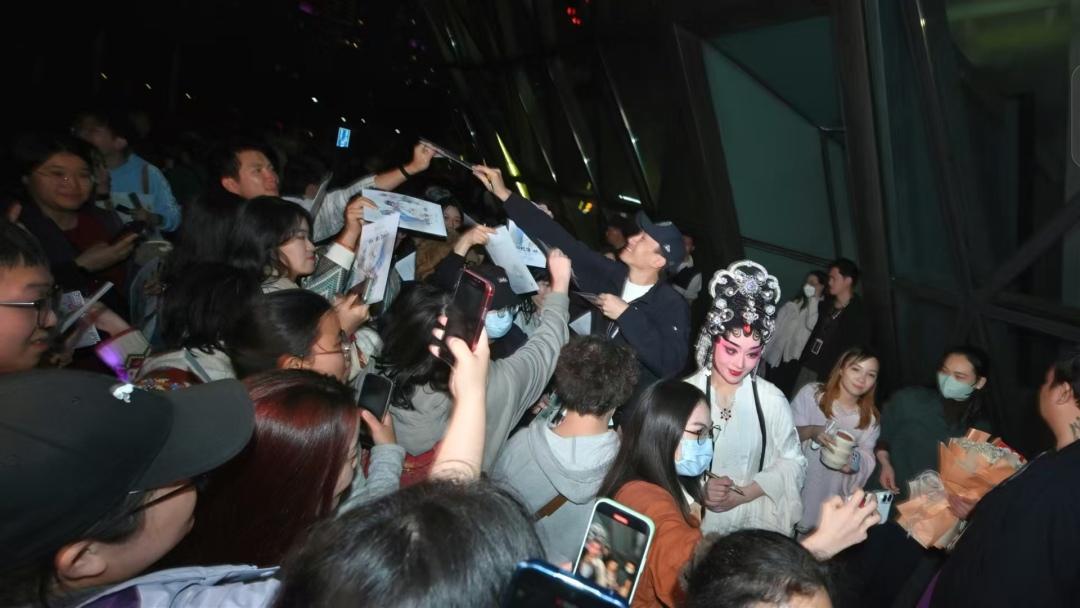 元宵节,粤剧《白蛇传·情》在广州大剧院演出后,来自全国各地的粉丝在演员离场口一睹名家风采